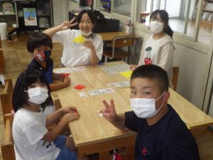 これは1年生に折り鶴を教えに来てくれたときの写真です。