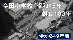 創立100年、昭和48年の今田小学校は、今の体育館の前、プールやふれあい農園の場所に建っていたんです。