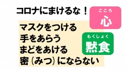 まずは、「コロナに負けるな!」のお話です。マスクをつけること、手を洗うこと、窓を開けること、密にならないことを心がけてください。31日からは給食も始まります。「黙食」もよろしくお願いします。そして、コロナのことで友達を傷つけるような言葉は絶対にいけません。コロナに負けないみんなの「心」を育ててください。
